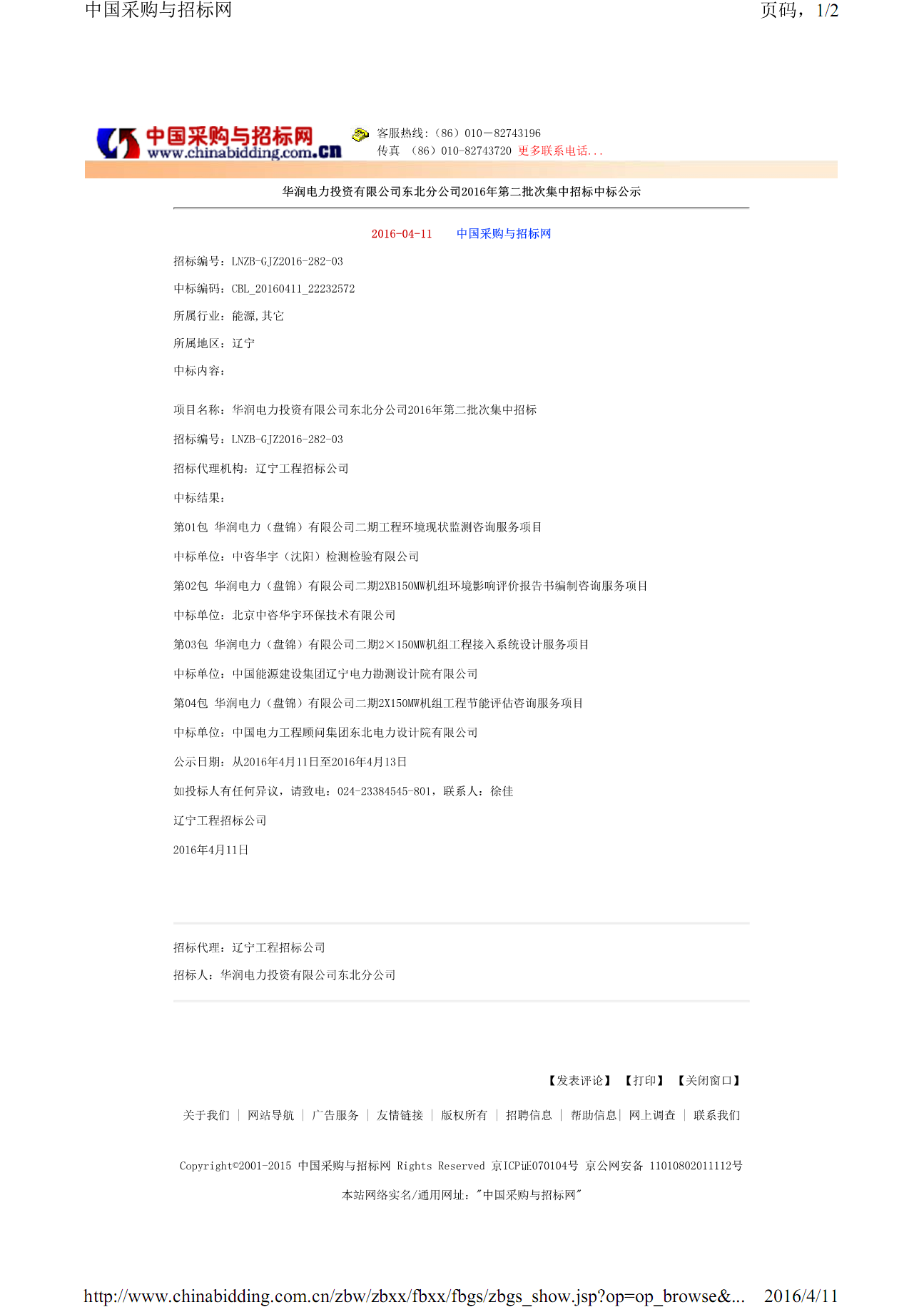近日,在華潤(rùn)電力投資有限公司東北分公司實(shí)施的“華潤(rùn)電力(盤錦)有限公司二期XB150MW機(jī)組環(huán)境影響評(píng)價(jià)報(bào)告書(shū)編制咨詢服務(wù)項(xiàng)目及華潤(rùn)電力(盤錦)有限公司二期工程環(huán)境現(xiàn)狀監(jiān)測(cè)咨詢服務(wù)項(xiàng)目”我們一舉中標(biāo)。 此次投標(biāo)項(xiàng)目公司領(lǐng)導(dǎo)十分重視,對(duì)投標(biāo)文件、技術(shù)質(zhì)量等都明確了具體要求。因時(shí)間緊、工作量大,在領(lǐng)導(dǎo)的帶領(lǐng)下,部門同事奮發(fā)圖強(qiáng)、團(tuán)結(jié)協(xié)作、共同努力,高效率、高質(zhì)量完成了編制投標(biāo)文件的任務(wù),并按期遞交招標(biāo)方。我司以優(yōu) 秀的方案、完善的服務(wù)標(biāo)準(zhǔn)及合理的報(bào)價(jià)贏得了評(píng)標(biāo)專家和招標(biāo)方的肯定,順利中標(biāo)。在公司發(fā)展的藍(lán)圖上寫下輝煌的一筆。也為我司今后的快速發(fā)展打下了堅(jiān)實(shí)基礎(chǔ)。